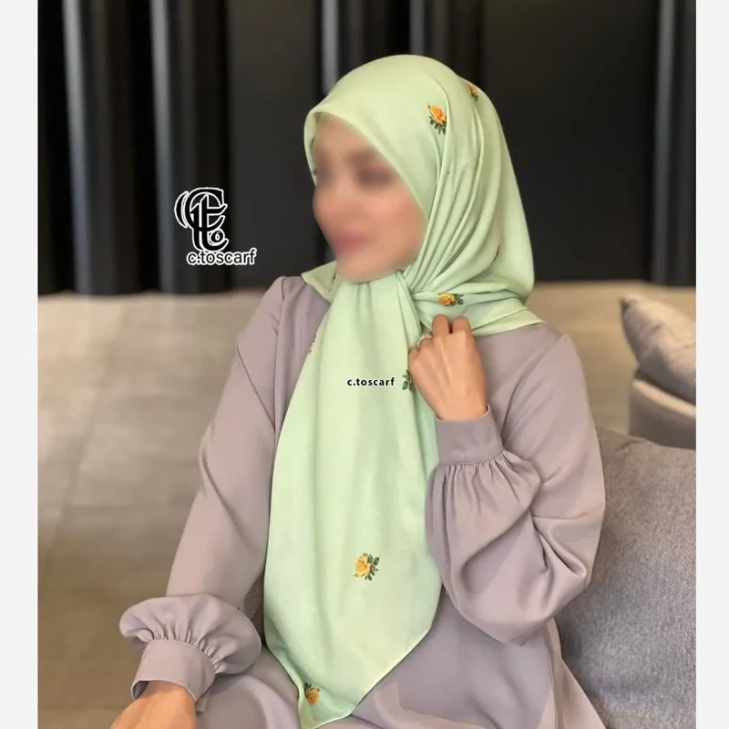 روسری طرح گل رز نخ کاستوم سیتو قواره متوسط 110 سانتیمتر چرخ دوز بدون لیز خوردگی