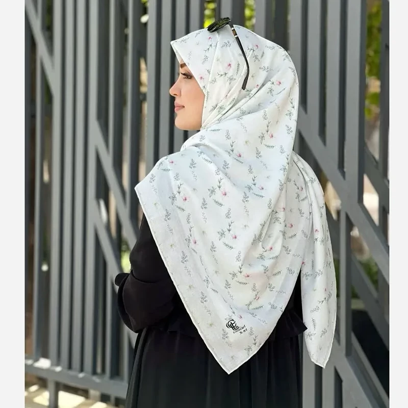 زیباترین روسری با زمینه سفید که می توانید داشته باشید. این روسری با طرح گل سفید خود، انتخابی ایده آل برای استفاده روزمره و مجالس است. همچنین، به دلیل جنس نخی و راحتی، برای استفاده هنگام نماز نیز مناسب می باشد.