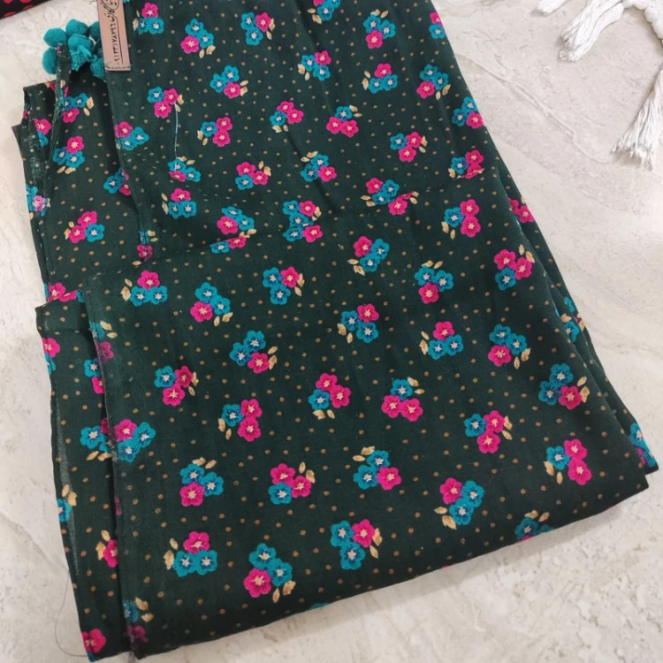 شال گلدار نخ دوک رنگ سبز طرح سنتی مناسب چهار فصل سبک و خنک