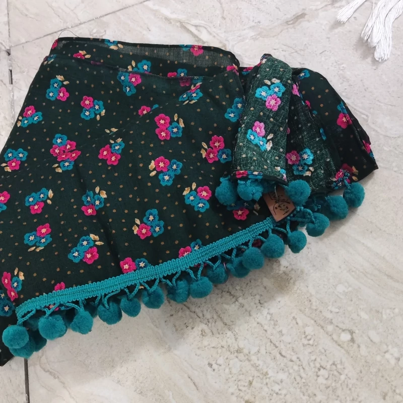 شال گلدار نخ دوک رنگ سبز طرح سنتی مناسب چهار فصل سبک و خنک