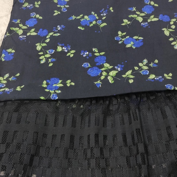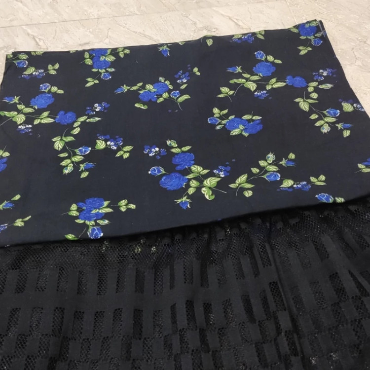 خرید شال نخی گلدار آبی با حاشیه دانتل مشکی طرح هندسی اعلا، انتخابی ایده آل برای تکمیل استایل شماست. این شال با طرح گلدار زیبا و رنگ آبی دلنشین، جلوه ای خاص به استایل شما می بخشد.
